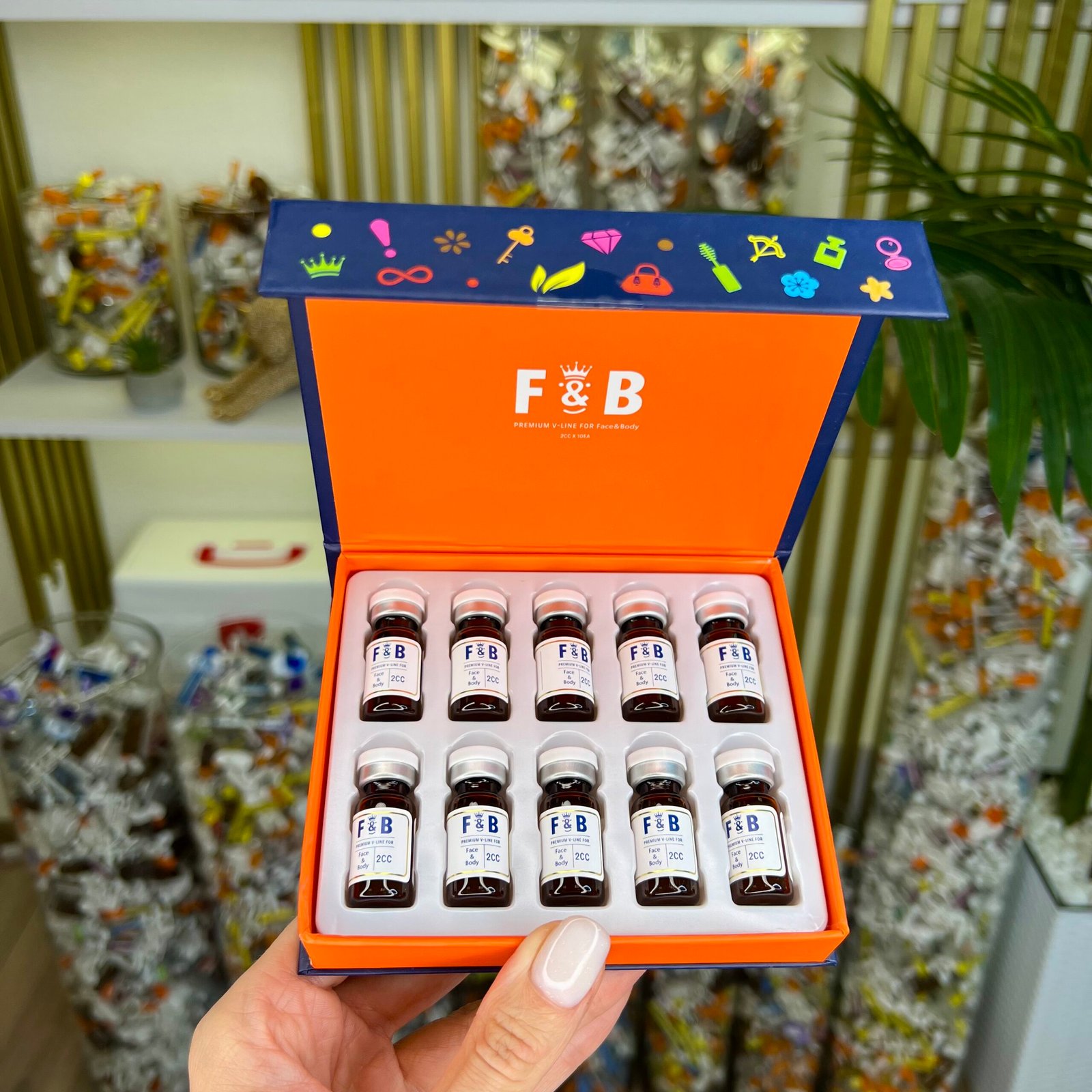 Face & Body Lipo Sculpting Solution (F&B Premium V-Line) 2 мл — ліполітичний розчин нового покоління, призначений для неінвазивного зменшення жирових відкладень і моделювання контурів обличчя та тіла. Завдяки багатокомпонентному натуральному складу, препарат поєднує ефективність ліполізу та доглядову дію на шкіру без високого ризику подразнень.